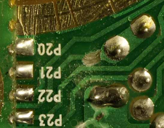 Es kommt noch besser, alle Eingangssignale sind auf der Controller-Huckepackplatine als Testpunkte herausgeführt und können somit ganz einfach abgegriffen werden. Die Ausgangssignale auch, aber an der Stelle nutzen sie uns nichts, da die Leiterbahnen erst "hinter" den Testpunkten getrennt werden.