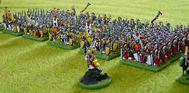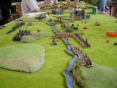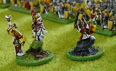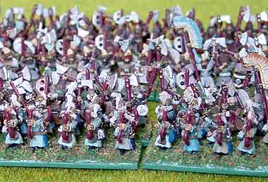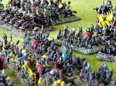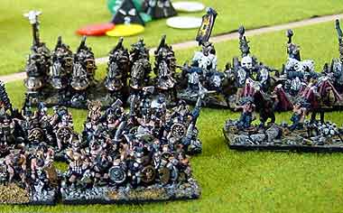 Richard Jones organised the event with help of Shaun and the PEWC club members. 14 players took part, making the LWD the biggest independent (from GW/Fanatic) Warmaster event. The organisation was very good and everybody seemed to have enjoyed the day. As far as I could see all games were conducted in the same friendly and relaxed manner which seems to be a trademark of Warmaster players. I assume that by the time you read this, Richard will have put some additional photographs and comments on his web site. Rules His "guests" would have to do so with 1500 points armies and no further limitations given. The players were divided into 4 teams of players that had played each other often. This is a nice touch because you automatically play against gamers "new" to you. With 3 players per team, two players were left floating.
