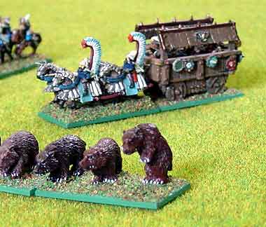 There were awards given for Best Team, Best General, Best Painting and Best Overall. All battles were standard battles setting up 80 cm afar, alternating setup of units. But two tables had special rules one being the fight about two narrow bridges. Armies My army list The army list I chose is quite typical for what I use nowadays. About 50% infantry and artillery and 50% cavalry and chariots. On 1500 points I restrain from using flyers or monsters. I spared the points for an Hero and left home only with General and Wizard, but as a give in, I took an Orb of Majesty. The army consisted of